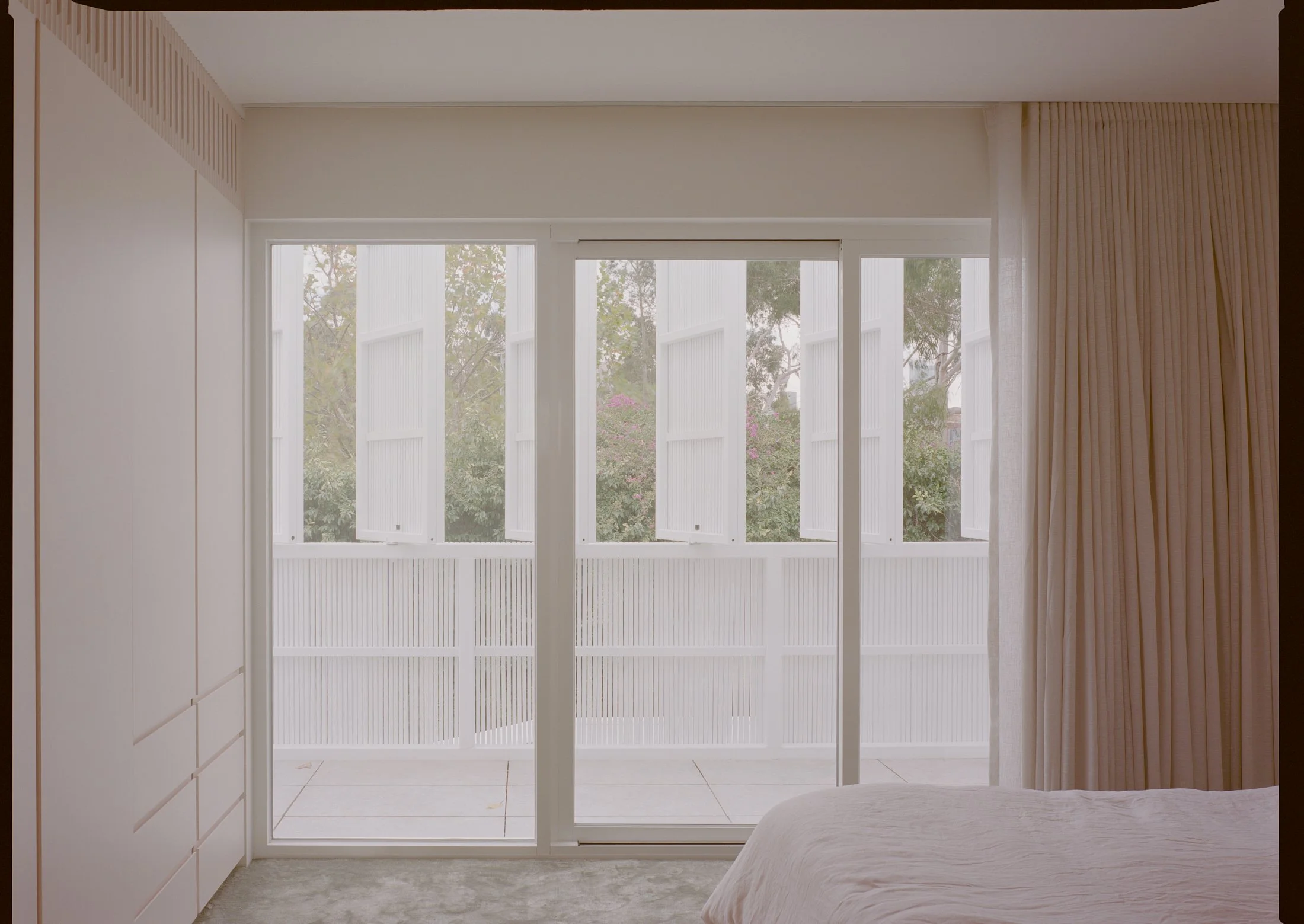 The pastel joinery plays an important role in shaping atmosphere. While the exterior maintains the clarity of a singular object in the laneway, the interior echoes Ricardo Bofill’s use of tones to temper the monumentality of strong architectural forms. Colour acts as a kind of atmospheric counterweight to the solidity of the building, introducing warmth, intimacy and a slightly dreamlike quality.